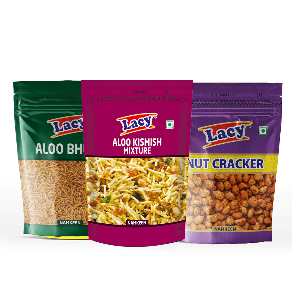 Aloo Kishmish: Aloo Kishmish is a delicious, mouth watering combination of potatoes, almonds, raisins, cashews and other rich ingredients which make it a sweet and salty snacking delight. It is well packed to retain taste and freshness of all its ingredients.
